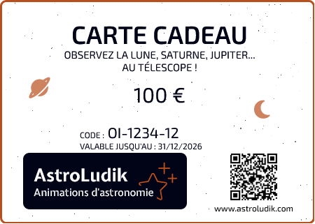 - La carte est valable 1 an à compter de sa date d'achat, laissant tout le temps pour eux de choisir la session qui leur convient. pour ce faire, rien de plus simple : ils vont sur AstroLudik.com, choisissent leur session puis au moment de payer ils saisiront le code de la carte cadeau pour l'utiliser.