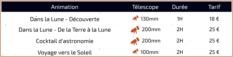 Réservez votre session d'astronomie sur Montpellier ! Si vous cherchez une activité originale, autour de la découverte et des sciences, vous avez trouvé ! Vivez un moment magique et unique à (re)découvrir le ciel dans des activités pour adultes et enfants à partir de 8 ans. Mêlant pédagogie, jeux, découverte et contemplation, mes animations sont destinées à être amusantes, simples et accessibles.